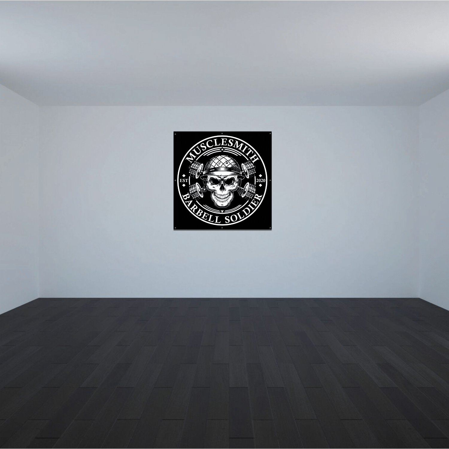 Musclesmith Banner EST. 2020 – Barbell Club – hochwertiges, B1-zertifiziertes Banner aus recyceltem PET mit brillanter Druckqualität. Robust, langlebig und 100 % Made in Germany. Setze ein Zeichen für deine Community.